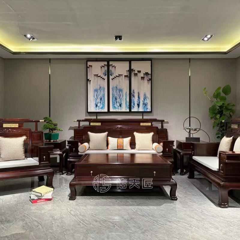 Комплет софа од цврсто абонос дрво во модерен кинески стил